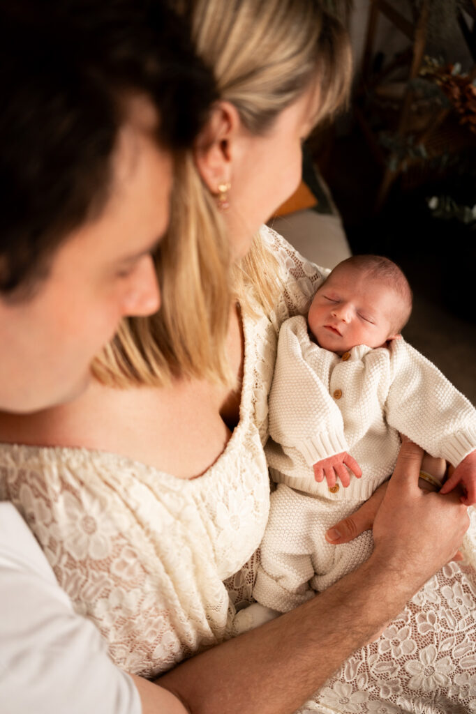 Les photos avec Louis seul ont été un moment suspendu. Louis, paisible, parfois éveillé, parfois plongé dans le sommeil, s’est laissé photographier avec une infinie sérénité. Chaque image révélé la poésie de la photographie de naissance, ce moment unique où tout commence.